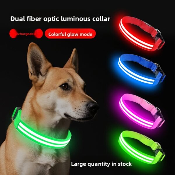 Multicolored glowing dog collar