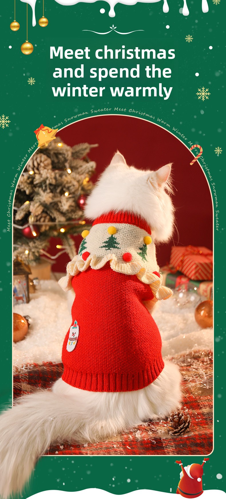 Warm Design: Christmas-themed sweater keeps pets cozy in winter.