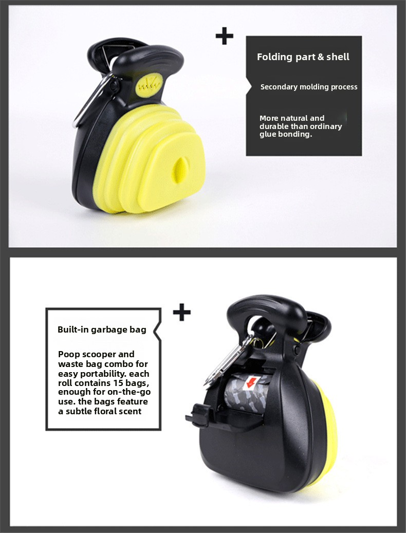 Multi-functional: Includes a poop picker and compatible garbage bags for convenient waste disposal.